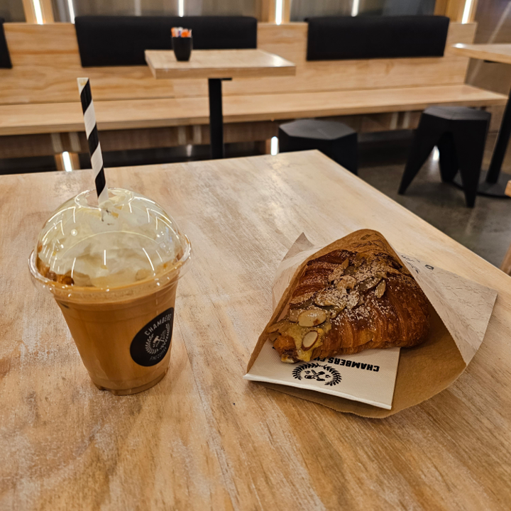 평소라면 아이스 아메리카노를 마셨겠지만, 왠지 모를 궁금함에 시그니쳐 커피와 아몬드 크로아상을 시켜보았다.